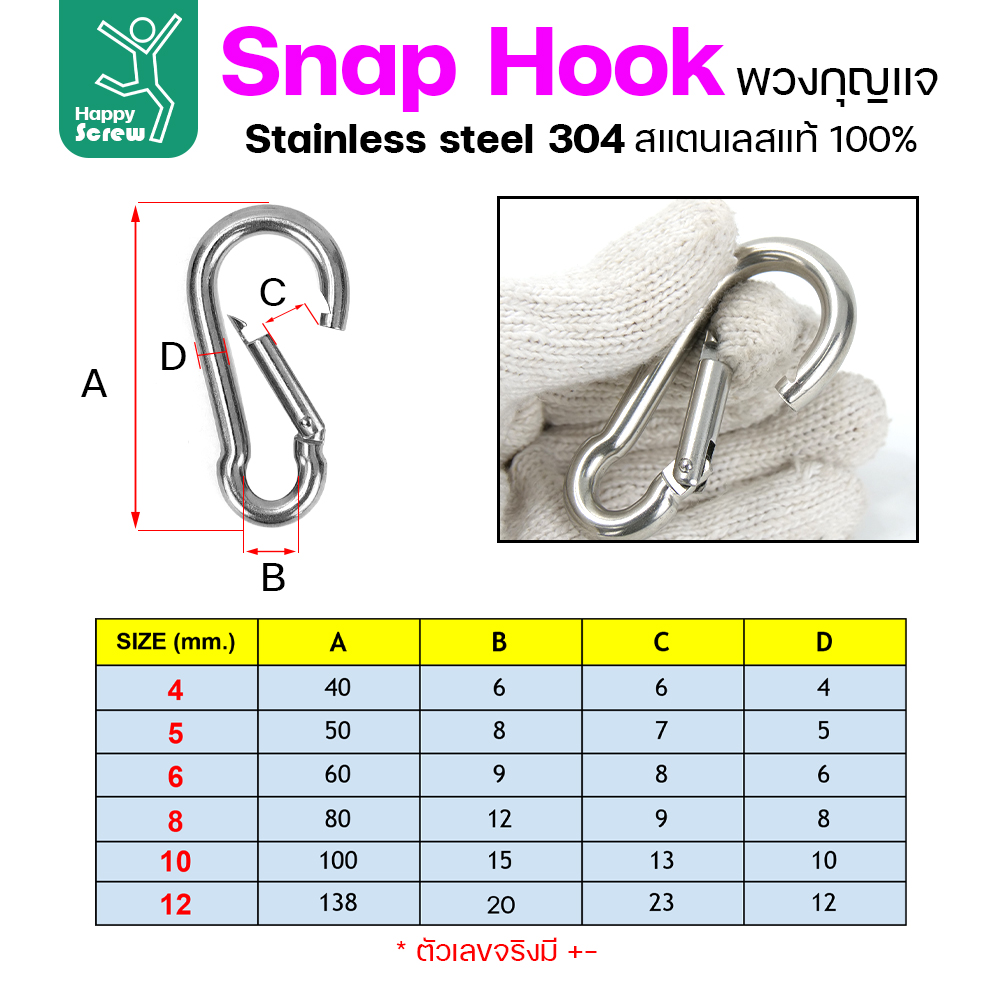 ประเภท:คาราบิเนอร์ สแน็ปลิงค์ สแน็ปฮุก สแตนเลส 304