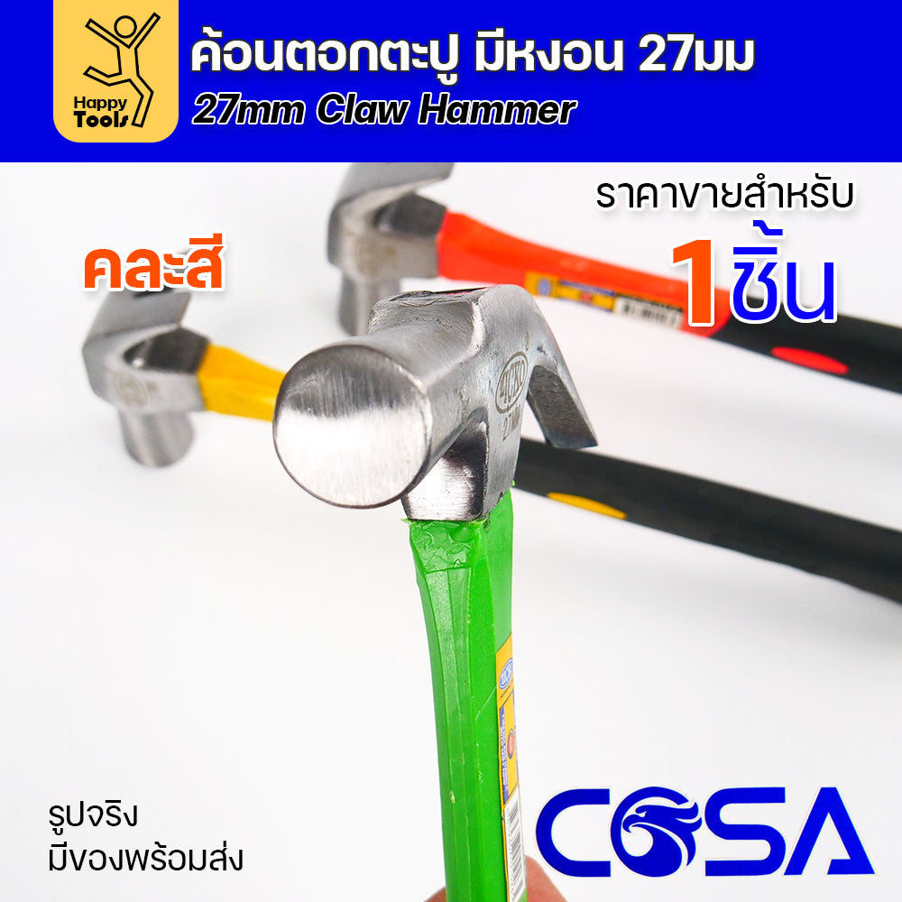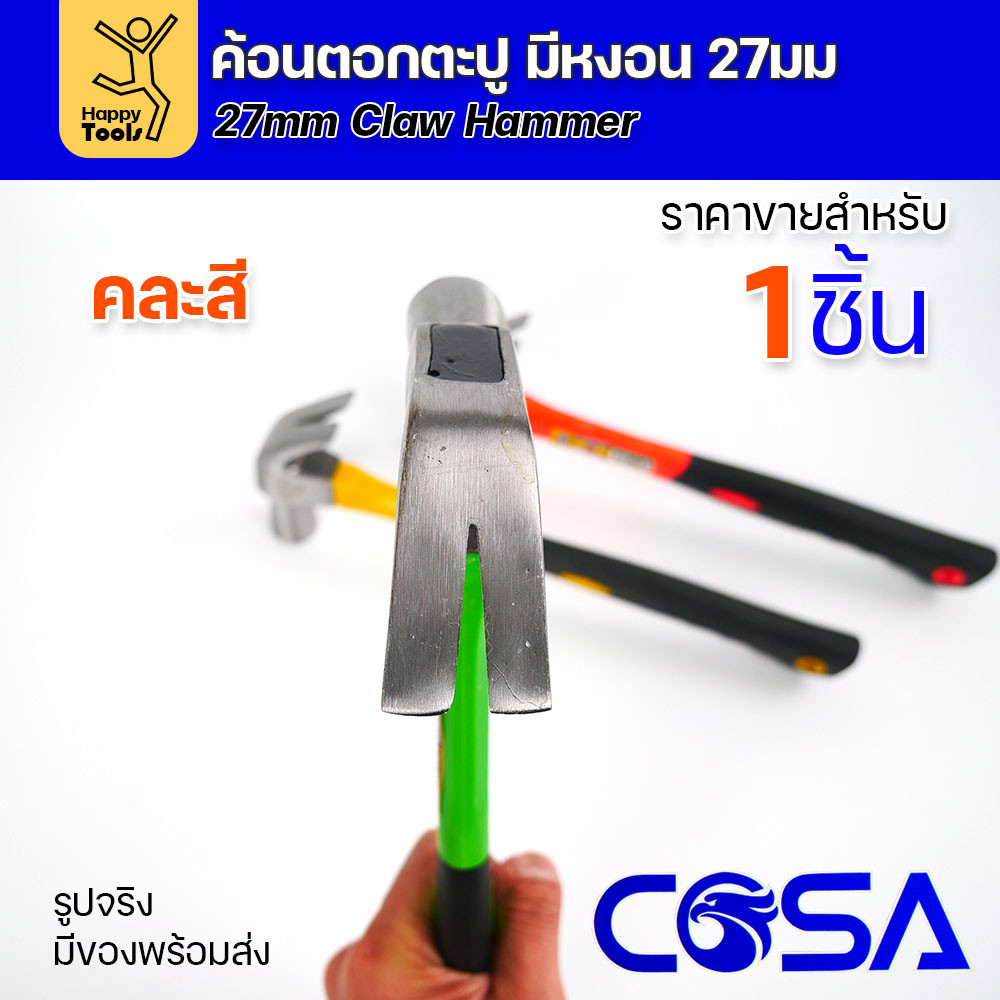 ค้อนหงอน 27 มม. ค้อนตอกตะปู ด้ามไฟเบอร์ หัวค้อนหล่อแน่น ไม่หลุด ปลอดภัย (คละสี)