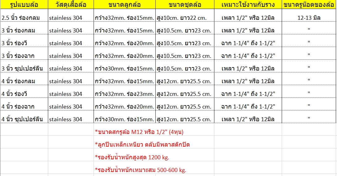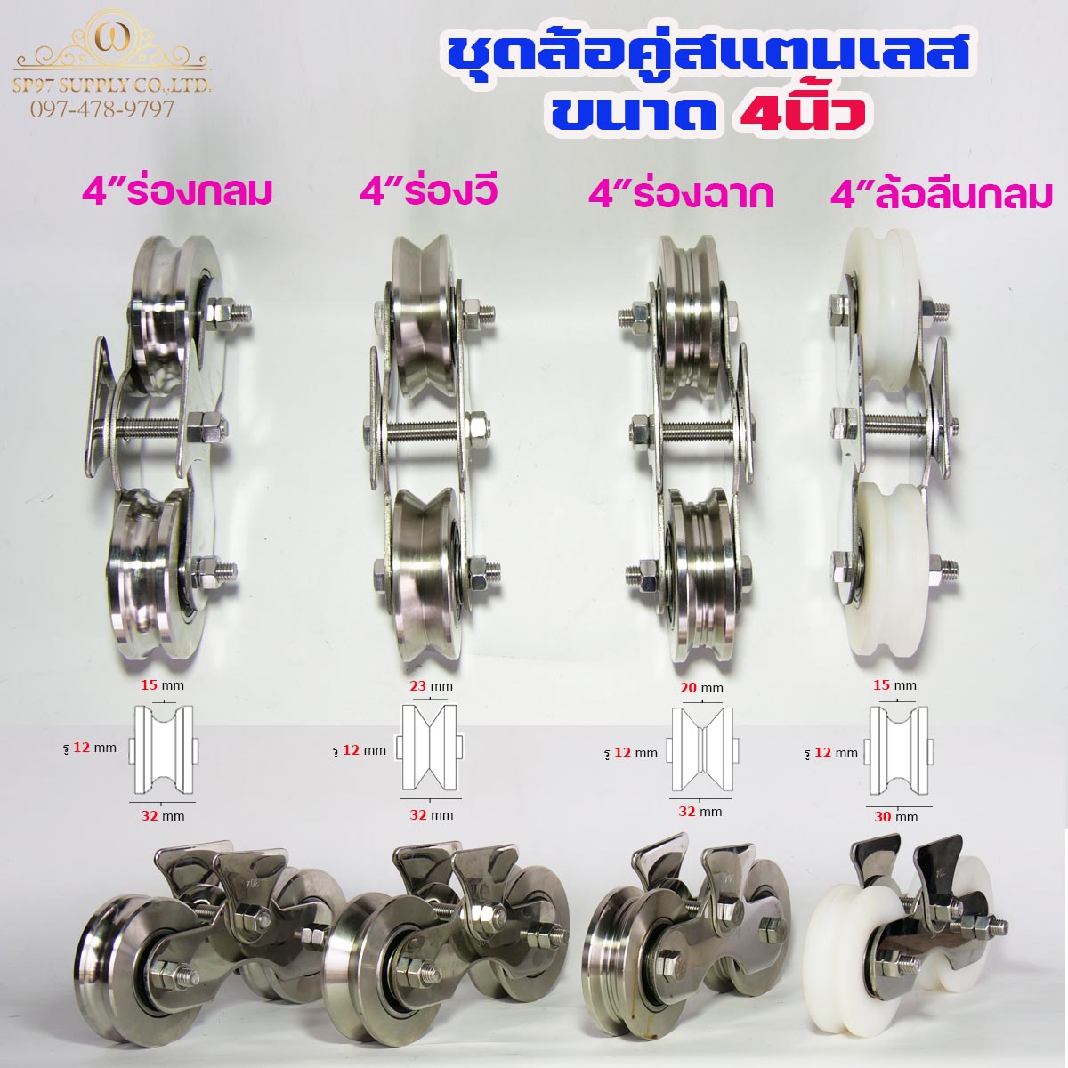 ชุด ล้อสแตนเลส ชุดล้อคู่ ขนาด2.5นิ้ว-4นิ้ว ร่องกลม ร่องวี ร่องฉาก ซุปเปอร์ลีน (เลือกแบบและขนาดได้ในตัวเลือก) ราคา1ชุด