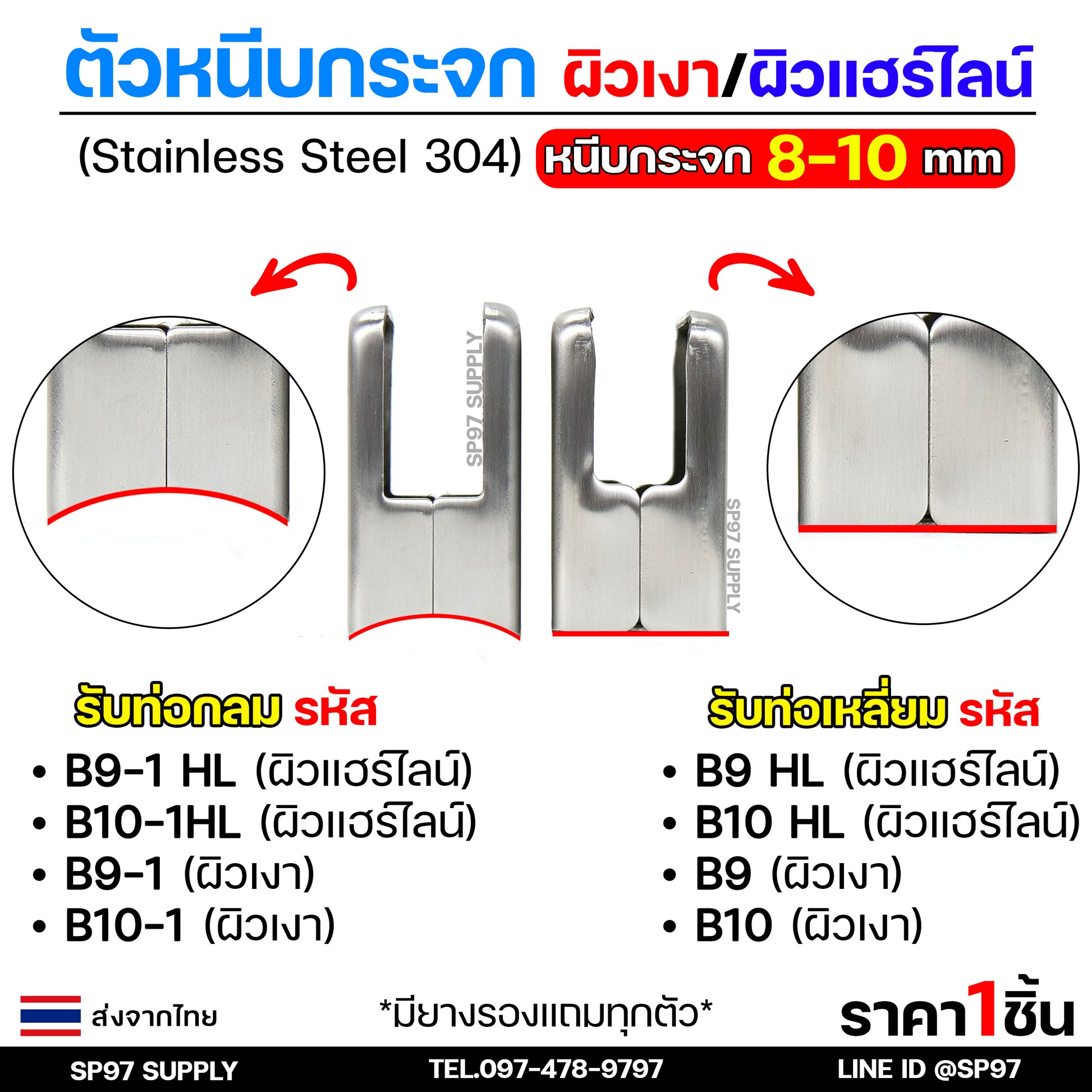 รวมตัวหนีบกระจก ทุกแบบ วัสดุสแตนเลสเกรด304 แท้ ทุกชิ้น