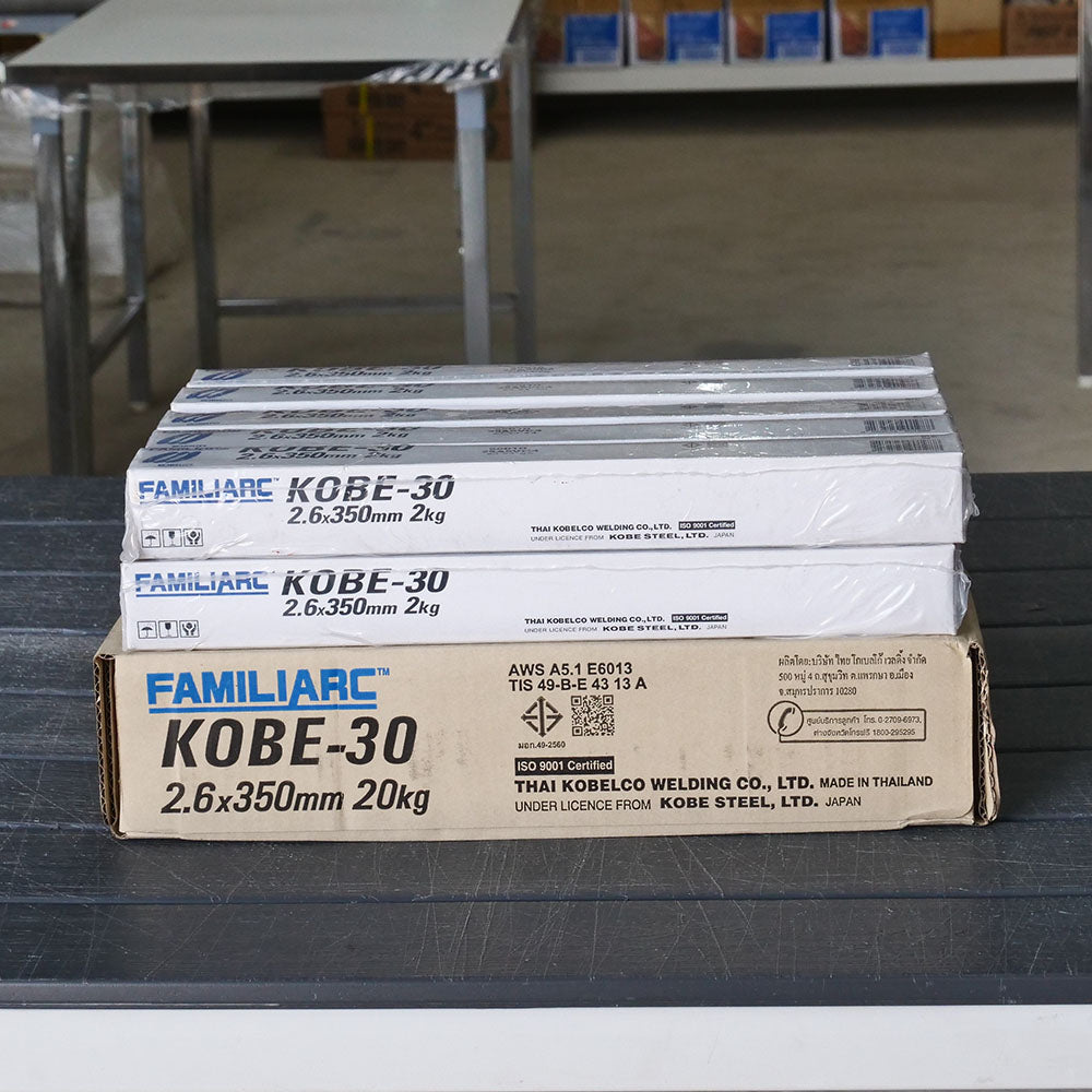 - ลวดเชื่อม KOBE-30 เป็นลวดเชื่อมหุ้มฟลักซ์ชนิดไตตาเนียสูง ทำให้การอาร์คมีความรุนแรงและนิ่งเรียบ ช่วยให้การเชื่อมง่ายและได้รอยเชื่อมที่สม่ำเสมอ