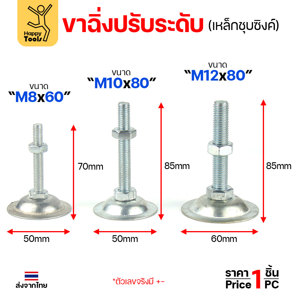 (ราคาส่ง)ขาฉิ่งปรับระดับ รุ่นเหล็กชุบซิงค์ M8x60 ใช้กับเฟอร์นิเจอร์รุ่นงานหนัก พวกขาโต๊ะ เครื่องครัว