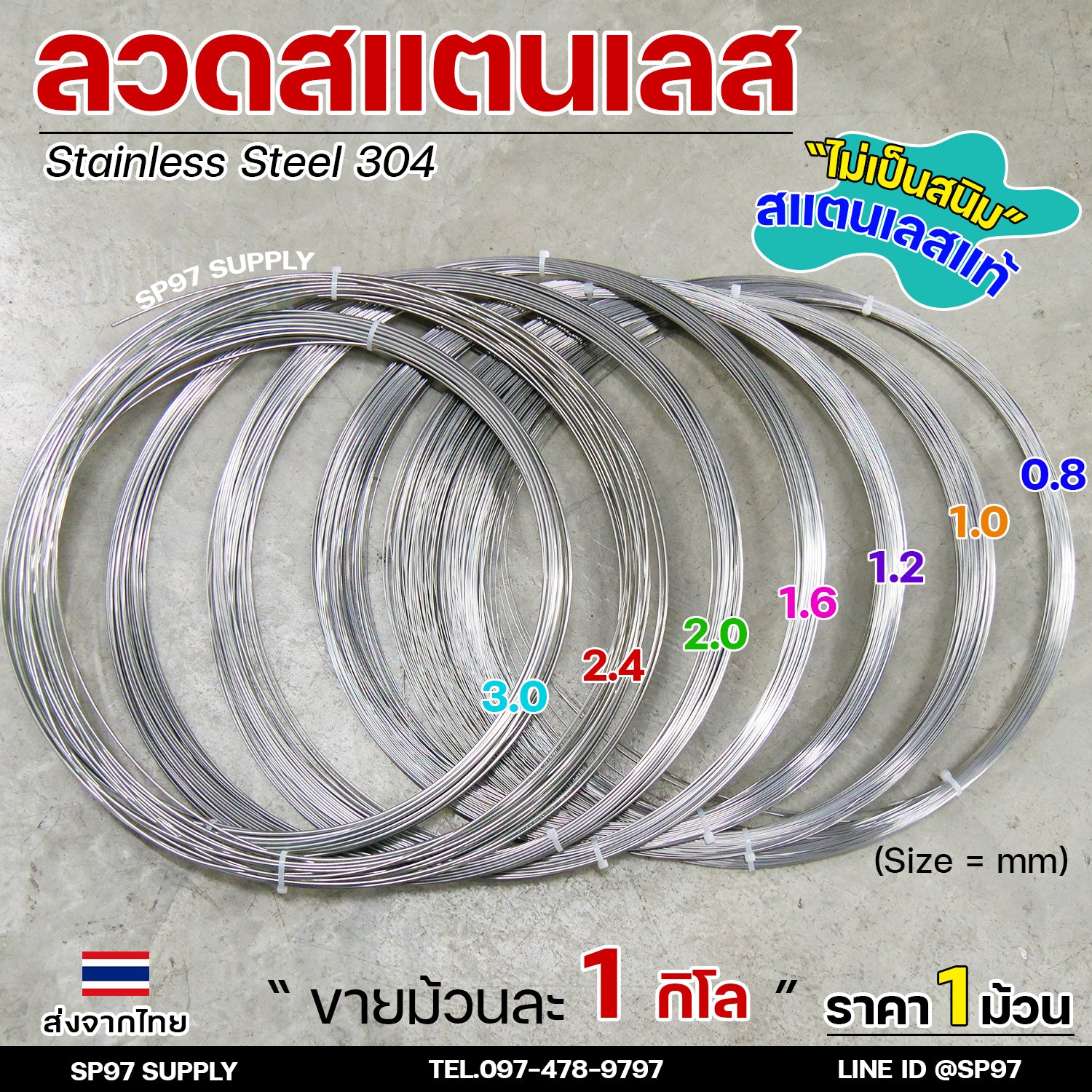 มีขนาด 1.0, 1.2, 1.6, 2.0, 2.4, 3.0 มมมีพร้อมส่งทุกขนาดที่หน้าร้าน สแตนเลสเกรด 304 แท้แน่นอนอน เกรดเดียวกับประตูบ้านและเครื่องครัวในโรงแรม