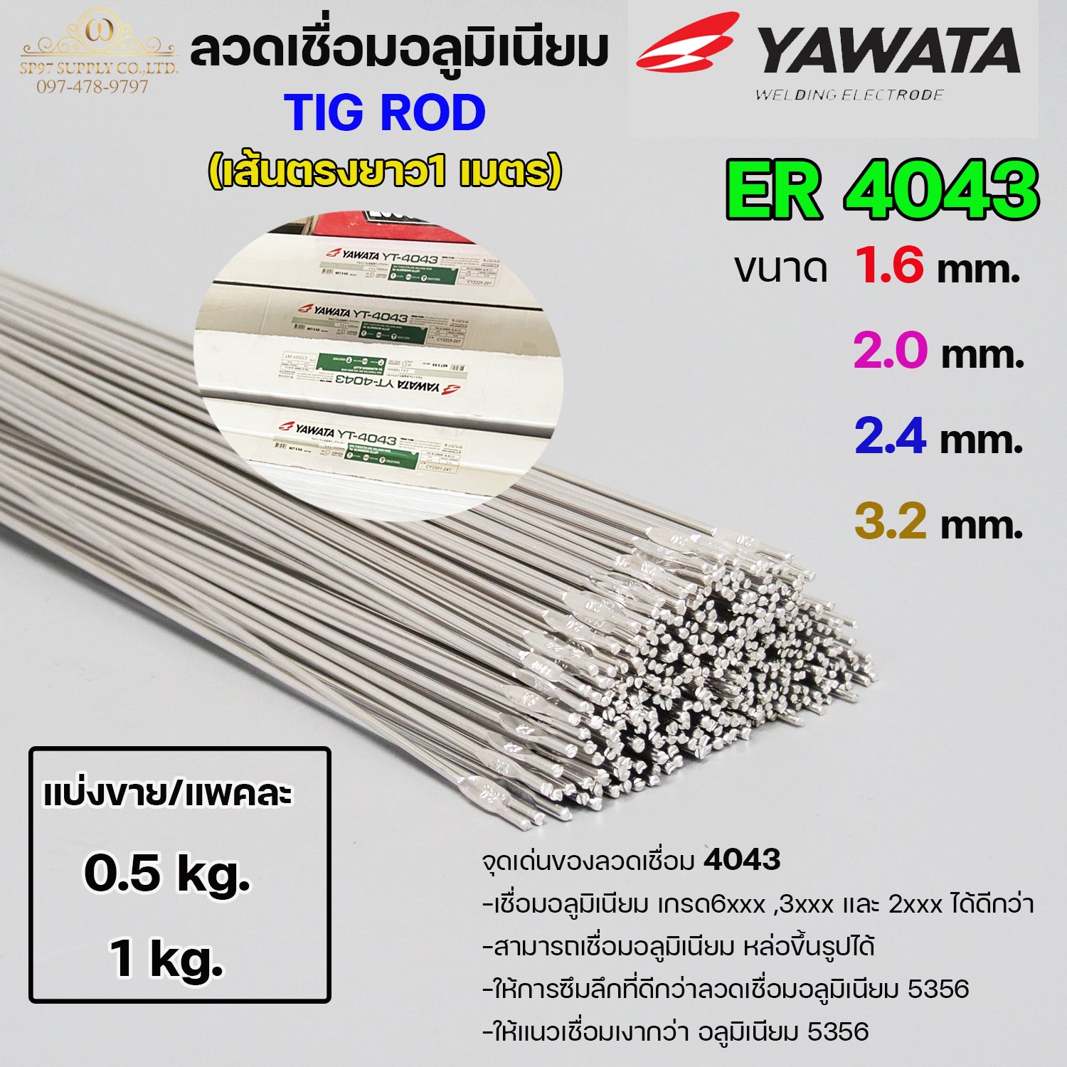 ลวดเชื่อม อลูมิเนียม TIG ROD เกรด4043 แบ่งขาย แพคละ 0.5 กิโล และ 1กิโล