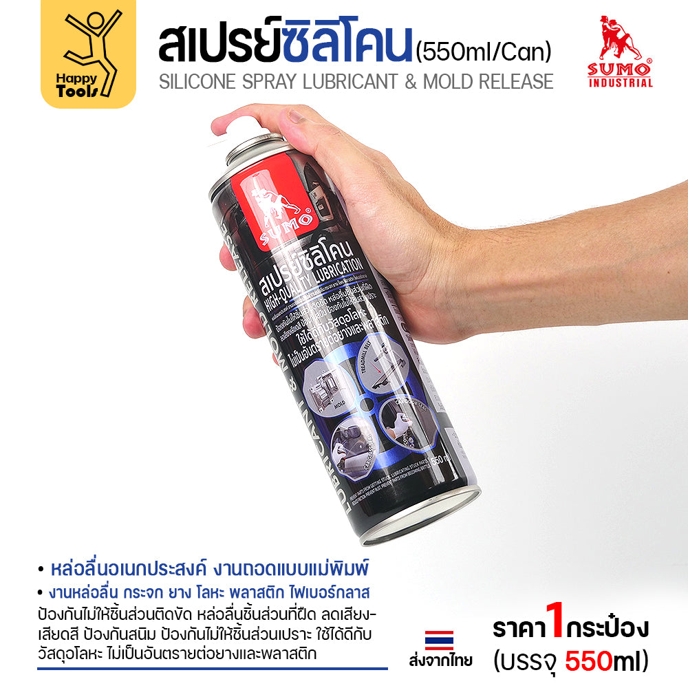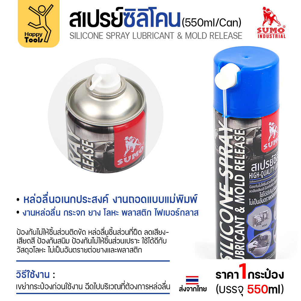 สเปรย์ซิลิโคนอเนกประสงค์ (Silicone Spray Lubricant & Mold Release) ขนาด 550 มล. เป็นน้ำยาหล่อลื่นคุณภาพสูงที่มีคุณสมบัติเด่นดังนี้