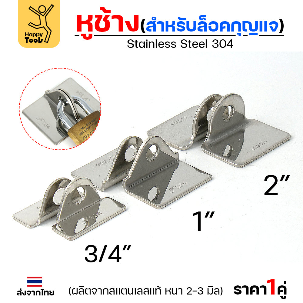 - การใช้งาน: เมื่อติดตั้งเสร็จและรอยเชื่อมเย็นตัวลงแล้ว สามารถนำแม่กุญแจมาคล้องผ่านรูหูช้างเพื่อล็อคได้ทันที