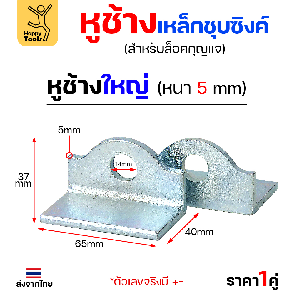 - การเตรียมพื้นที่: เลือกตำแหน่งที่ต้องการติดตั้งบนประตู บานพับ หรือโครงสร้างที่ต้องการล็อก โดยควรให้หูช้างทั้งสองชิ้นประกบกันพอดีเมื่อปิดประตู