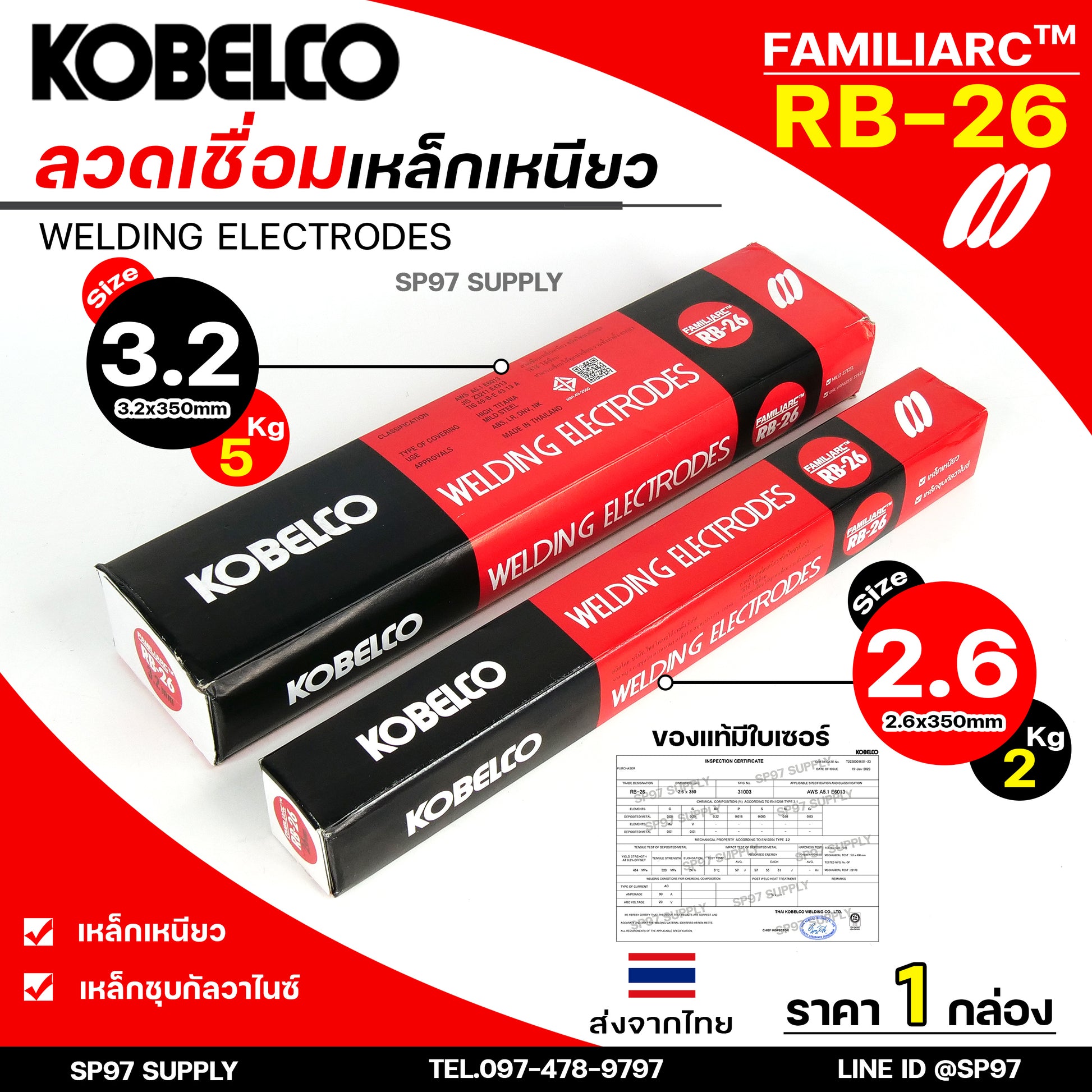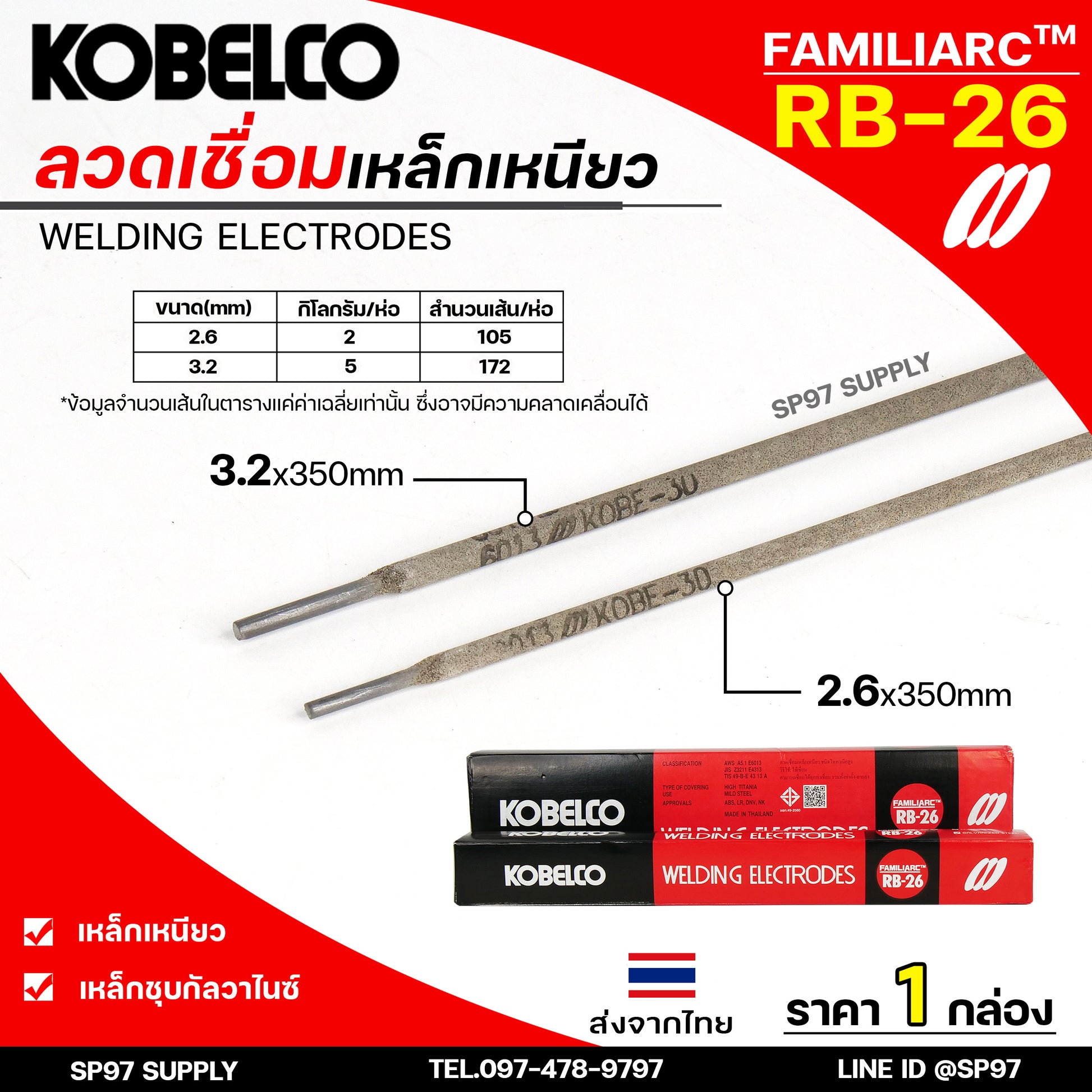 ลวดเชื่อม โกเบ RB-26 มีให้เลือก 2 ขนาด