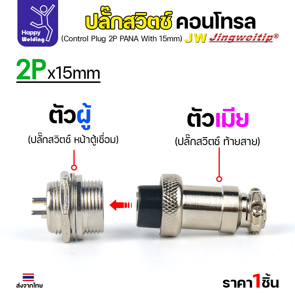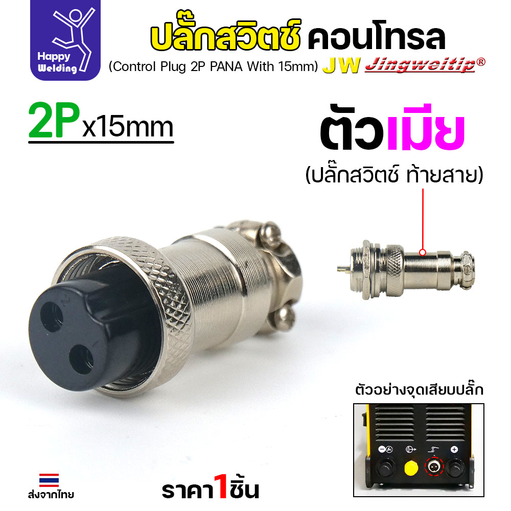 (อะไหล่ตู้เชื่อม)ข้อต่อสวิตช์ปลั๊ก สีเงิน หน้าตู้เชื่อม 2ขา สำหรับตู้เชือมอาร์กอน (Air plug 2 ขา สีเงิน)