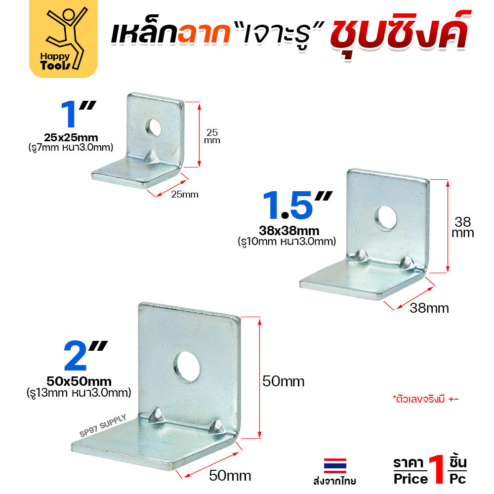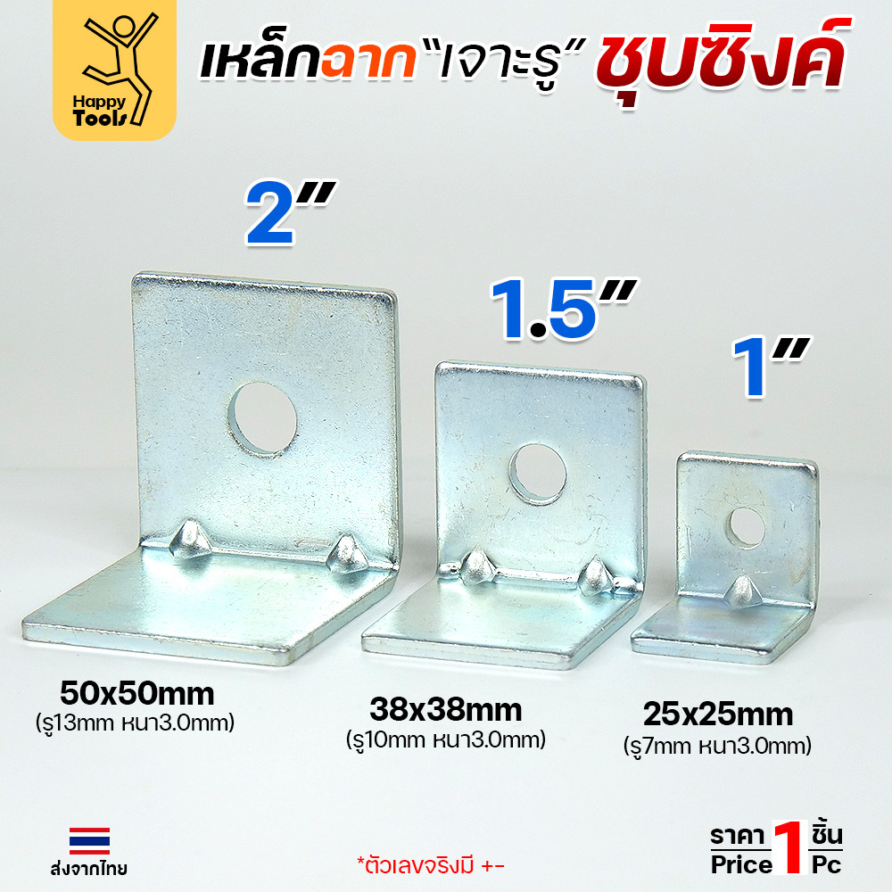 อะไหล่เฟอร์นิเจอร์ เหล็กฉากปั๊มเจาะรู ชุบซิงค์กันสนิม มีขนาดให้เลือกตามชิ้นงาน ย้ำมุมเพิ่มความแข็งแรง