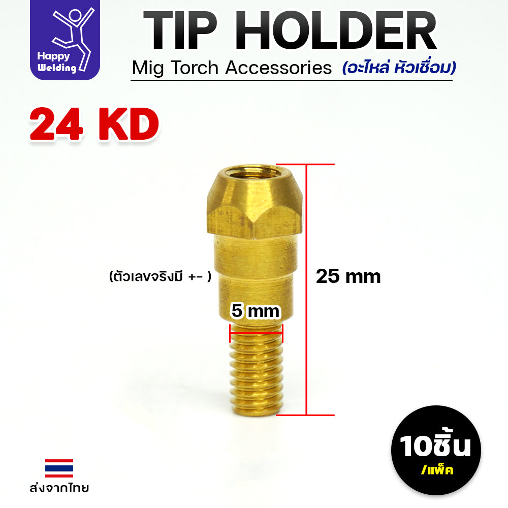 (อะไหล่ 24KD)JW อะไหล่ เชื่อมมิก MIG Tip Holder (ทิพ โฮลเดอร์) 24KD คุณภาพดี มาตรฐานไรลอนไทยแลนด์ แพคละ 10 ตัว