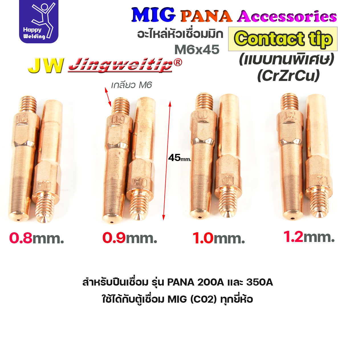 เหมาะกับปืนเชื่อม PANA รุ่น 200A และ 350A ขนาดเกลี่ยวต่อ M6 (6 มิล) ความยาวตัวทิพ 45มิล