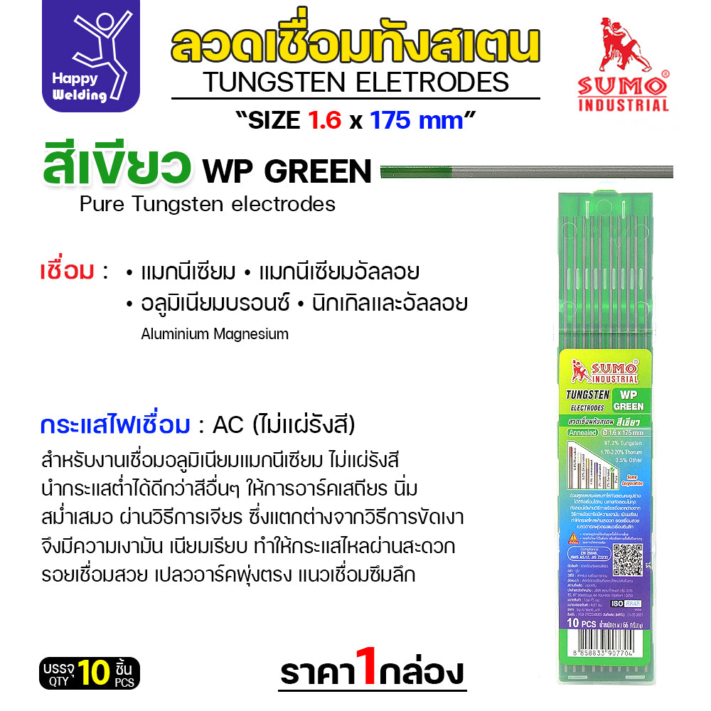 ชื่อสินค้า: SUMO ทังสเตน เขียว WP 1.6mmx175mm และ 2.4มม ยาว 175 มม