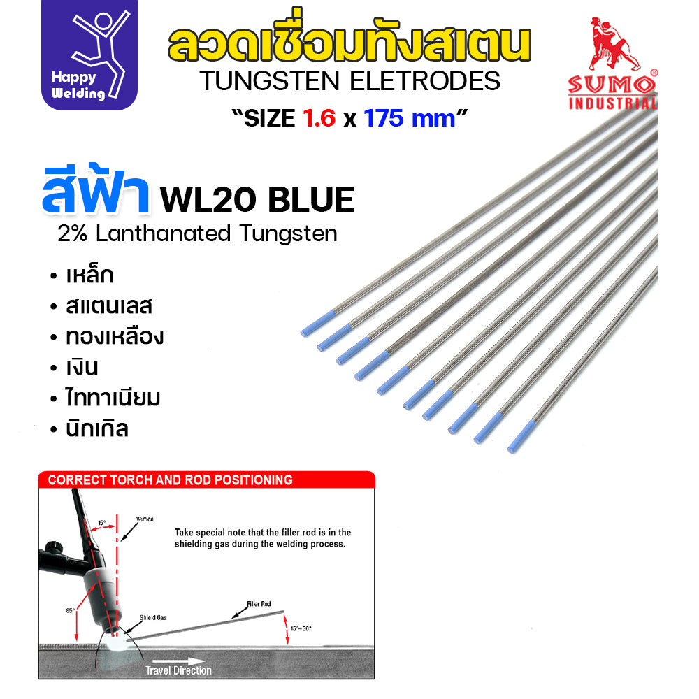 ชื่อสินค้า: SUMO ทังสเตน สีฟ้า (น้ำเงิน) WL20 1.6mmx175mm