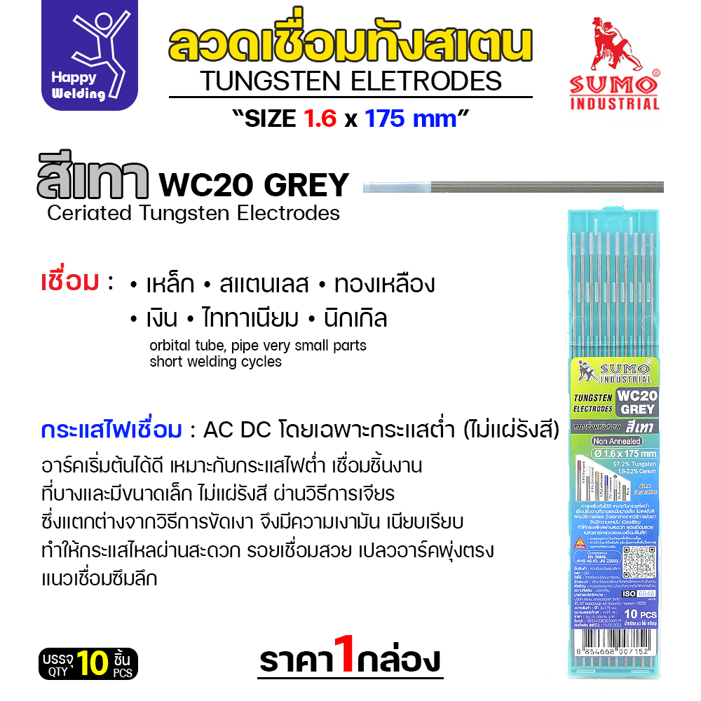 ชื่อสินค้า: SUMO ทังสเตน เทา WC20 1.6mmx175mm