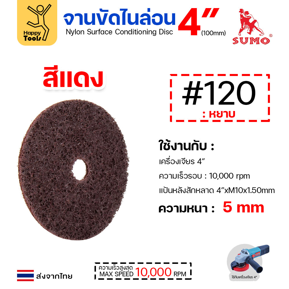 ขนาด: 4"x16mm #120 สีแดงเข้ม
