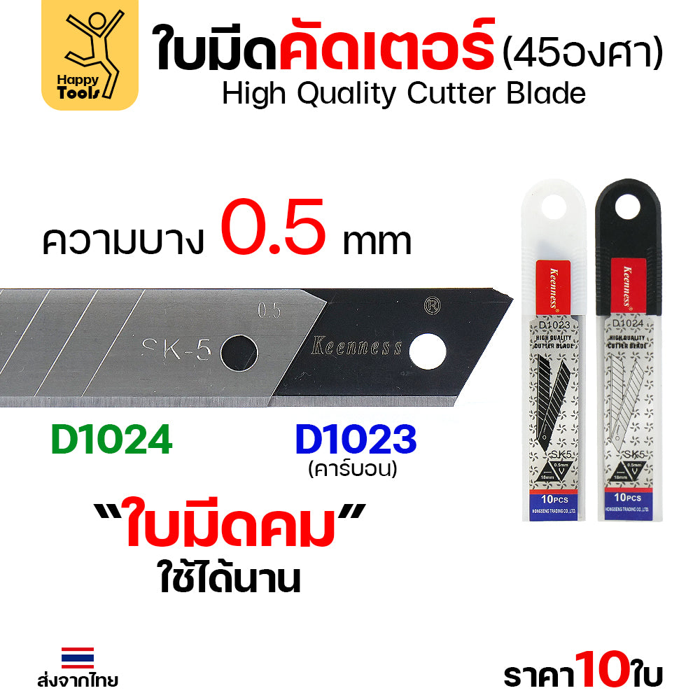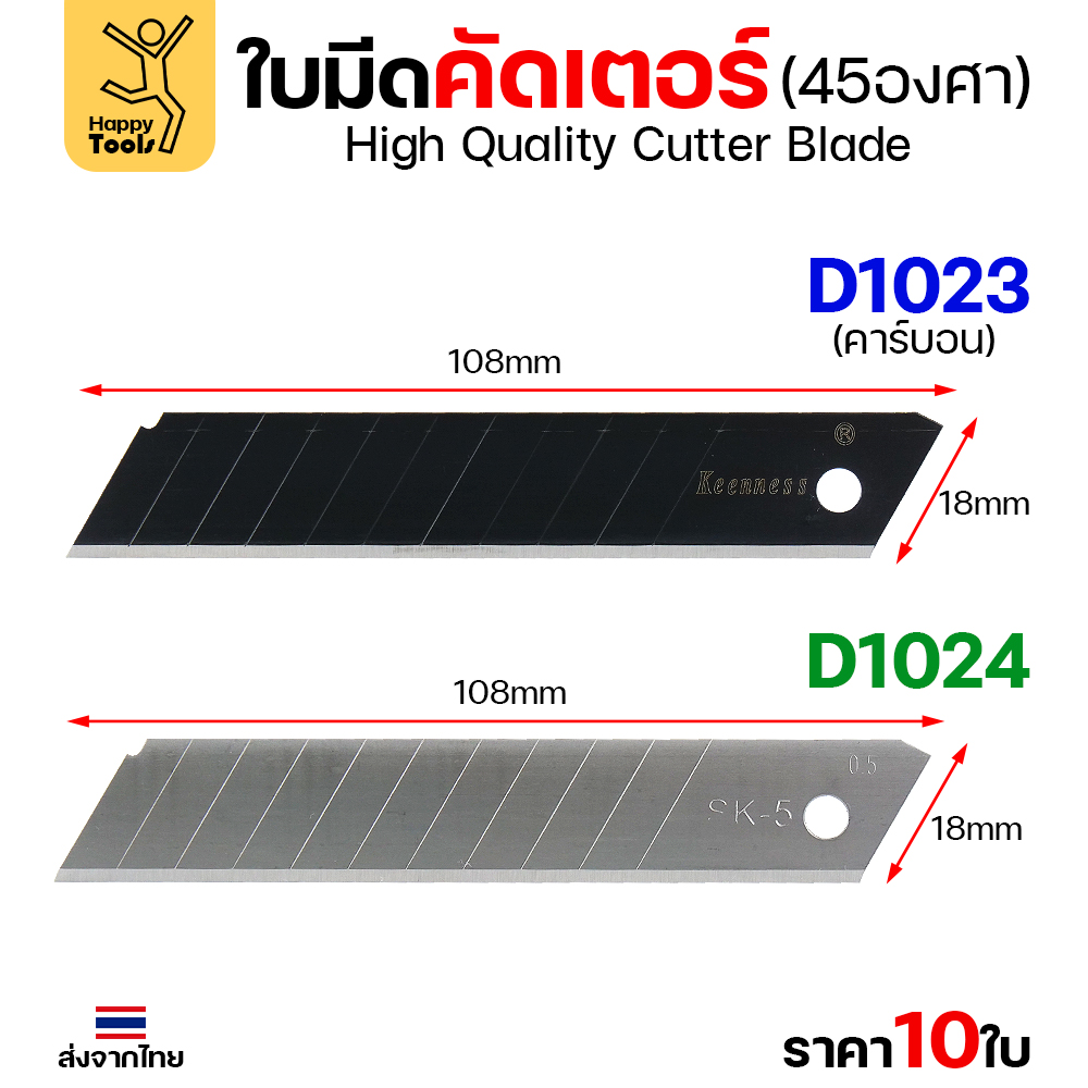 ใบมีดคัตเตอร์ Keenness ขนาด 18mm. ใบมีด ใบใหญ่ จำนวน 10ใบ ใบมีดคัตเตอร์ ใหญ่ (ใบขนาด 18มม. จำนวน 10 ใบ) - ใบมีดใบใหญ่ ความคมสูง - ใบมีดขนาดมาตรฐาน ขนาด18 มม. - ใบมีดทำมุมเฉียง : 45 องศา บรรจุ 10ใบ/แพ็ค บรรจุ100ใบ/กล่อง บรรจุ 2,400ใบ/ลัง