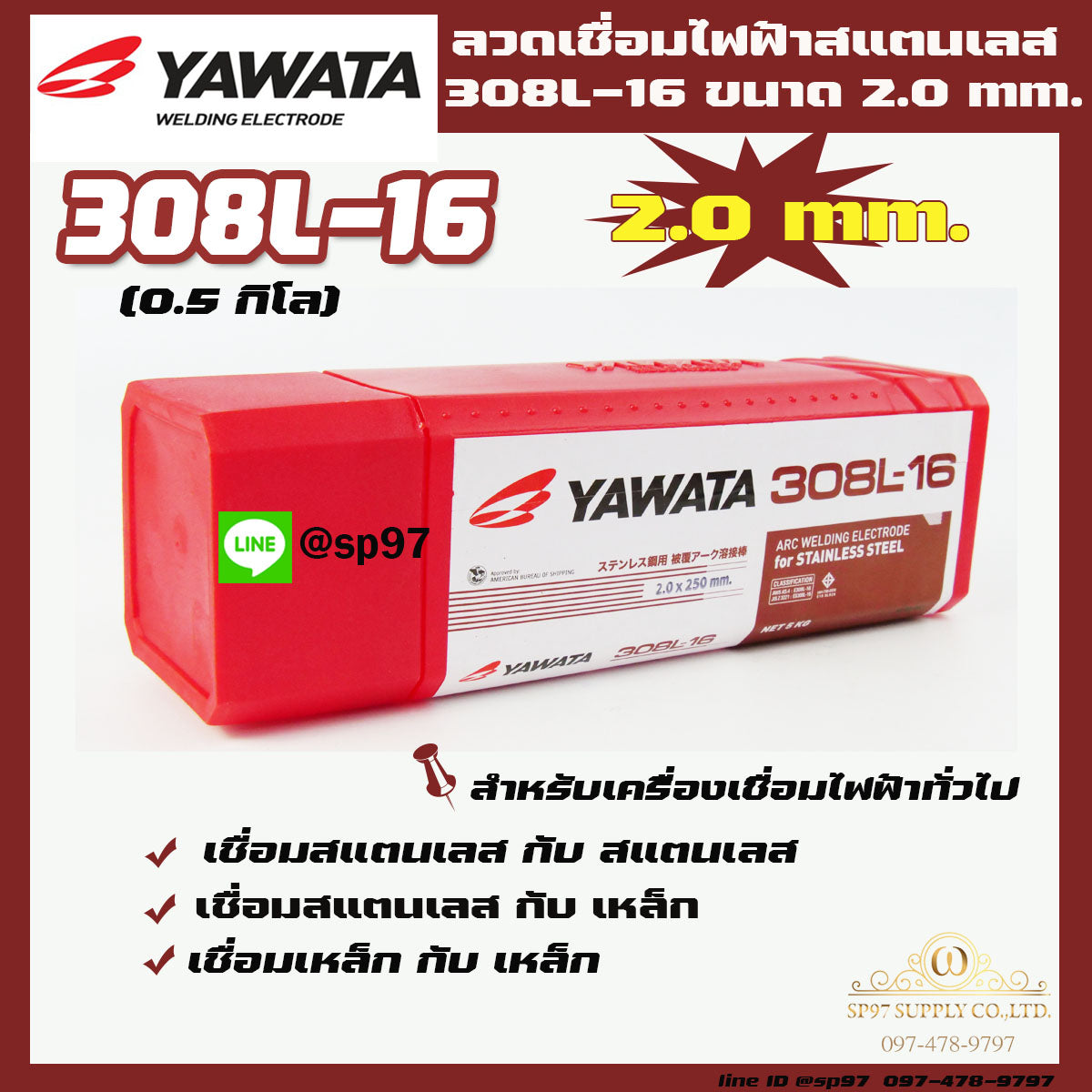 (แพค0.5โล) YAWATA ลวดเชื่อมไฟฟ้าา ลวดเชื่อม สแตนเลส 308L-16 ขนาด 2.0x250 มม บรรจุในซองสูญญากาศป้องกันความชื้น