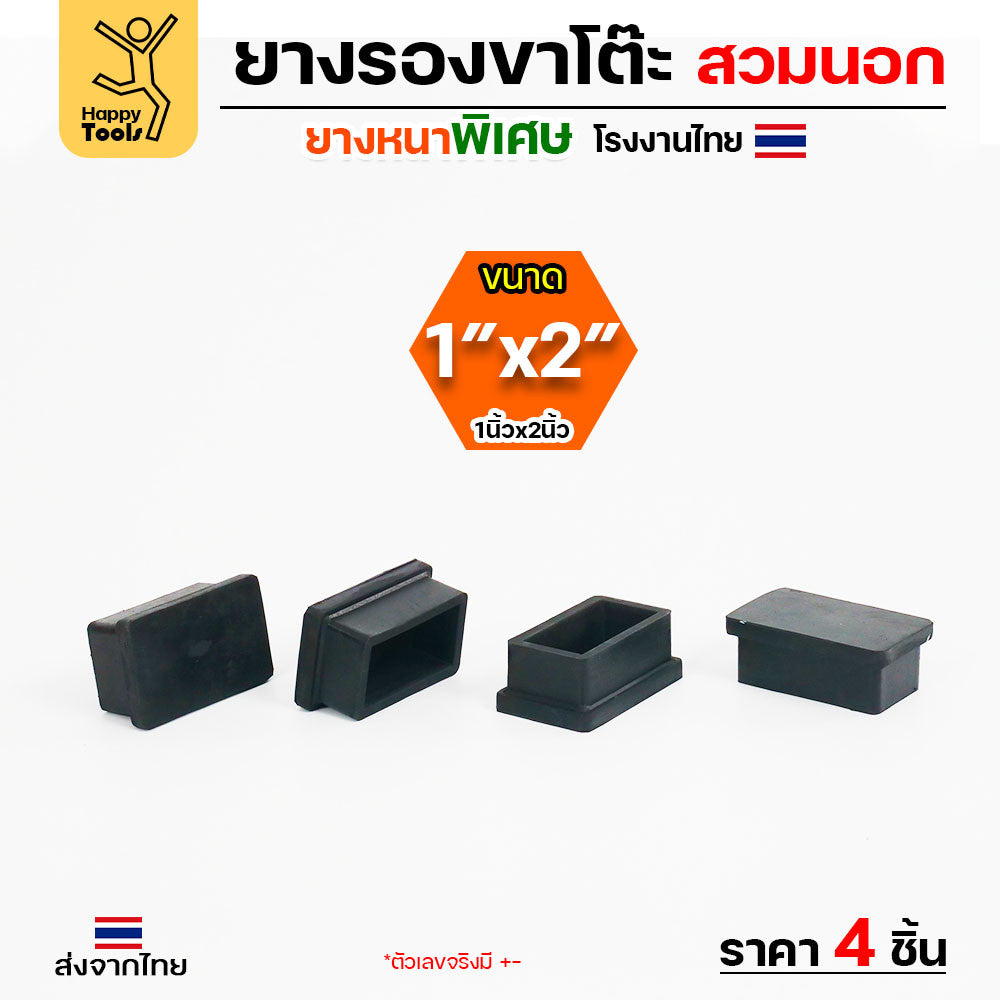 (แพค4ชิ้น) ยางรองขาโต๊ะ ยางรองขาเก้าอี้ แบบเหลี่ยม ขนาด 1 x 2 นิ้ว (สวมนอก) รุ่นหนา งานไทย