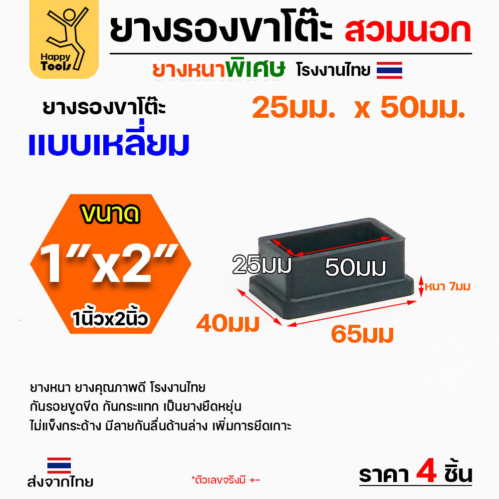 ยางรองขาโต๊ะเหลี่ยม ขนาด 1นิ้วx2นิ้ว รุ่นหนา สวมนอก