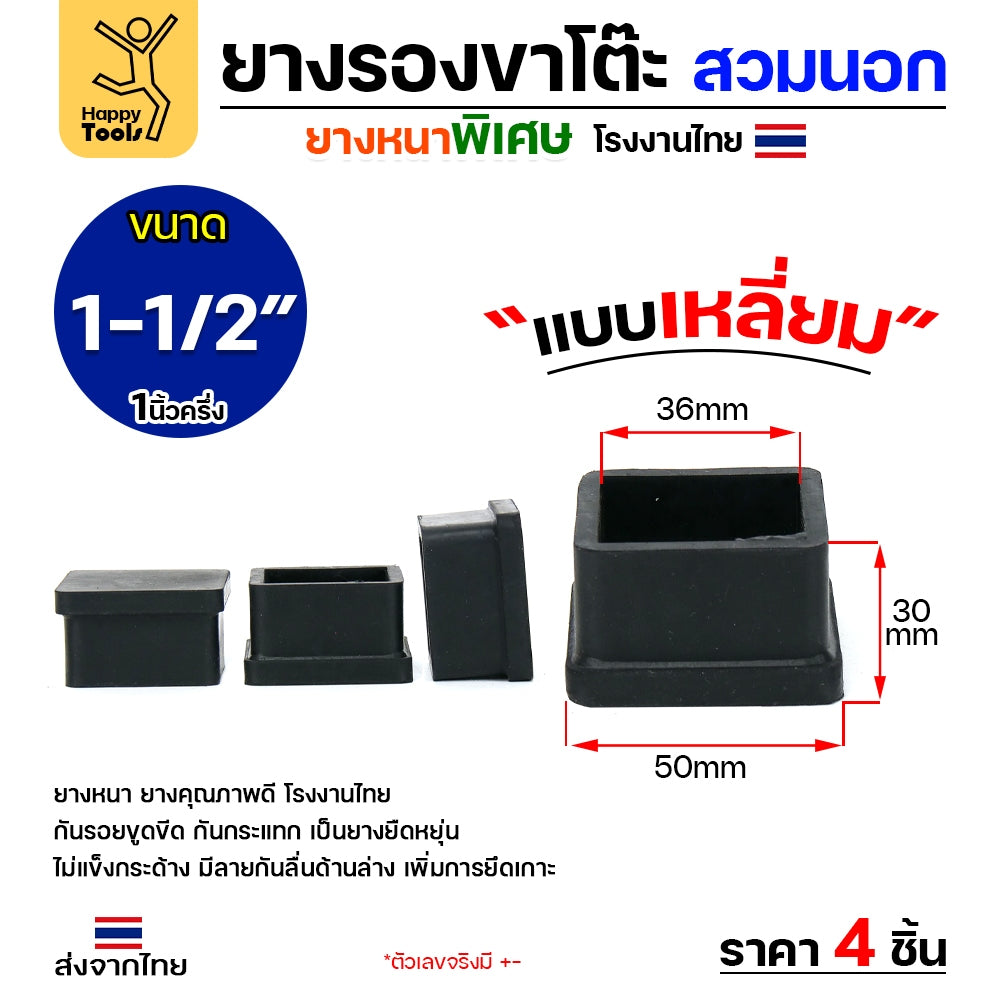 ยางรองขาโต๊ะเหลี่ยม ขนาด 1.5 นิ้ว รุ่นหนา สวมนอก
