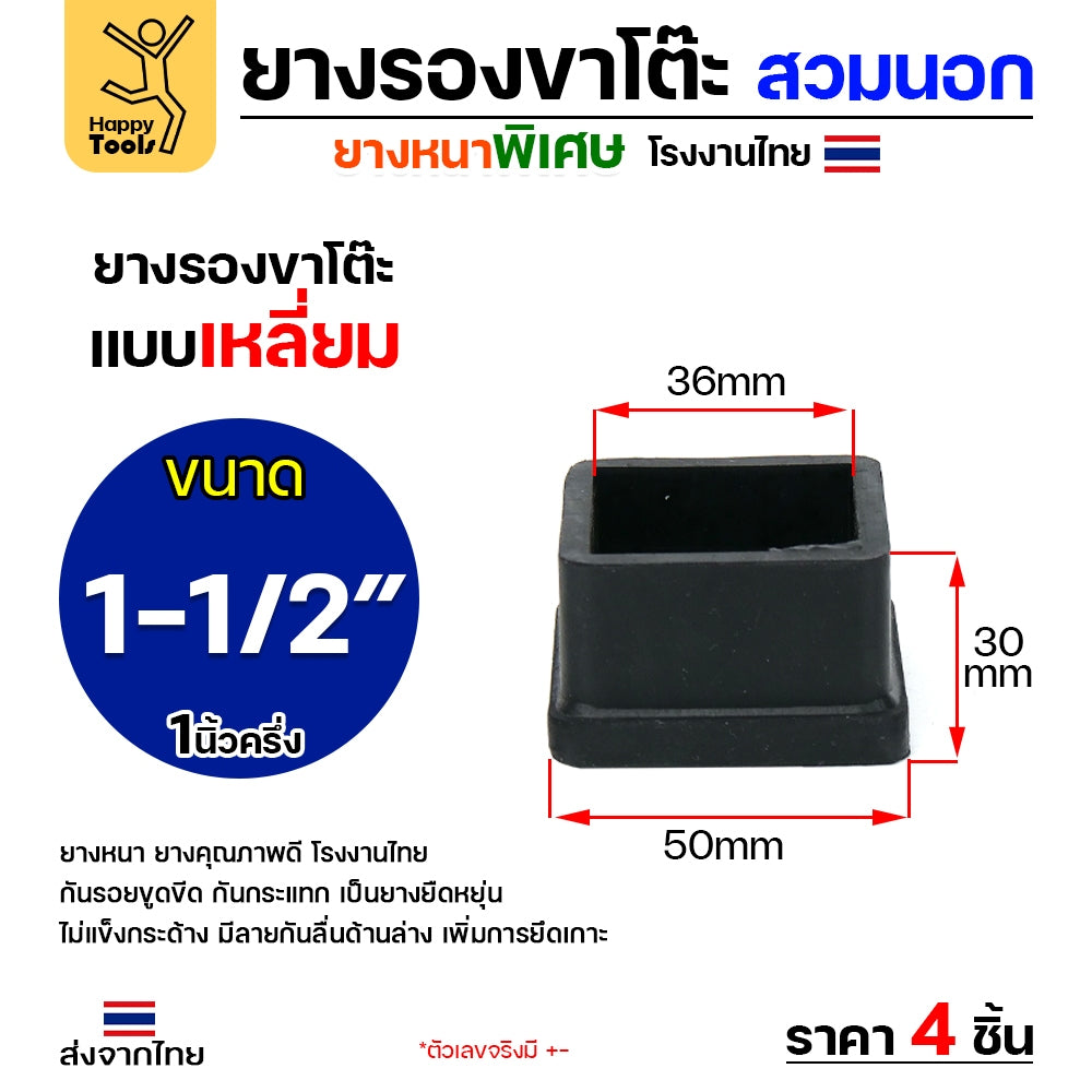 (แพค4ชิ้น) ยางรองขาโต๊ะ (สวมนอก) ยางรองขาเก้าอี้ แบบเหลี่ยม ขนาด 1-1/2 x 1-1/2 นิ้ว (ขา4x4ซม) รุ่นหนา งานไทย