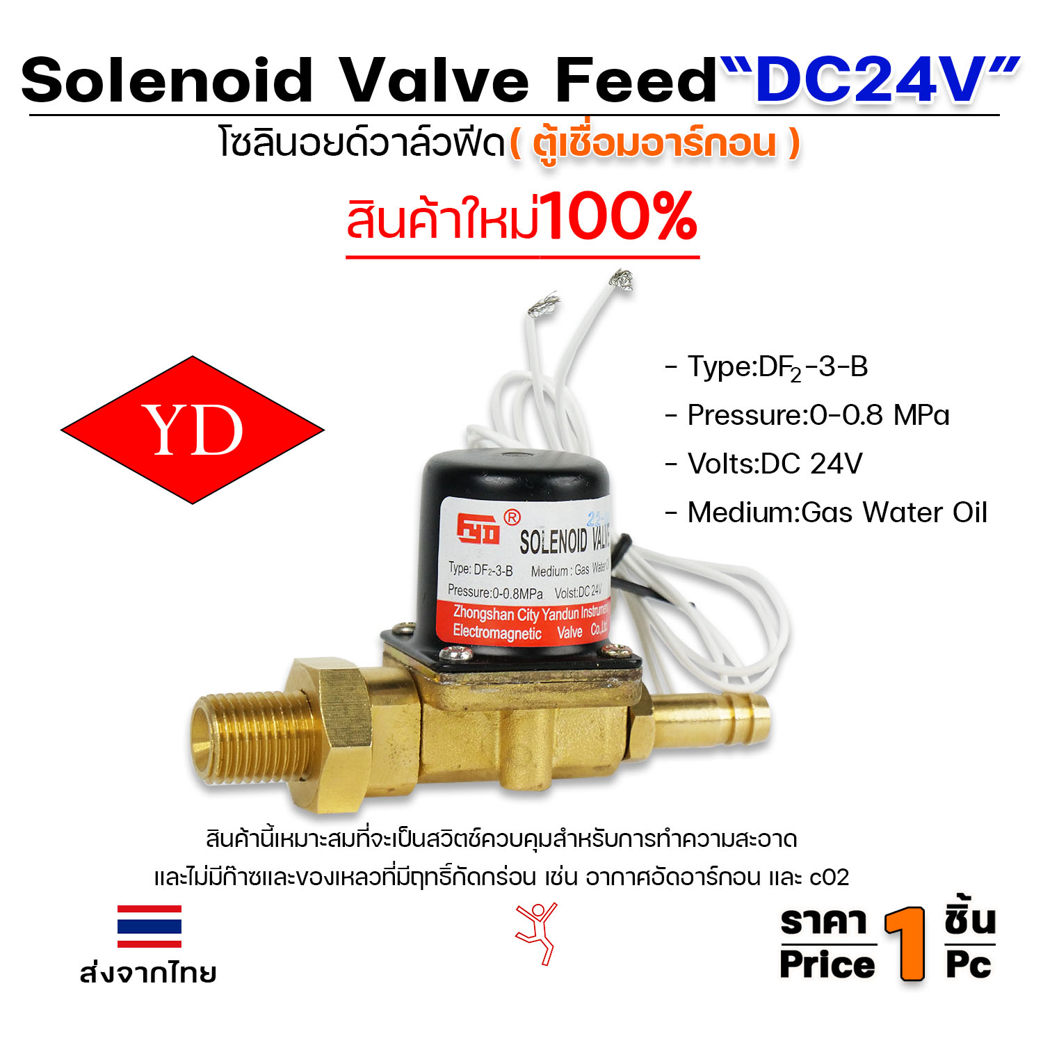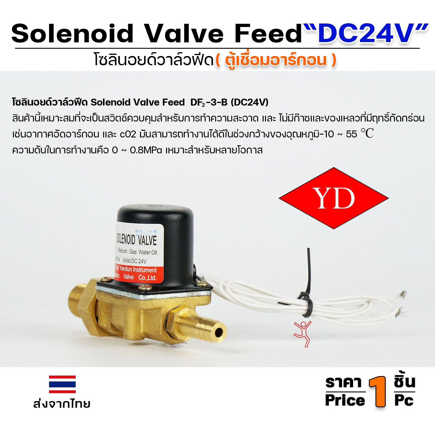 โซลินอยด์วาล์วฟีด (Solenoid Valve Feed) รหัส DF2-3-B ไฟ DC24V ที่ใช้กับตู้เชื่อมอาร์กอน เป็นส่วนประกอบสำคัญที่ทำหน้าที่ควบคุมการไหลของก๊าซอาร์กอน (หรือก๊าซเฉื่อยอื่นๆ ที่ไม่กัดกร่อน เช่น CO2) ไปยังหัวเชื่อม เพื่อให้การเชื่อมเป็นไปอย่างราบรื่นและมีประสิทธิภาพ