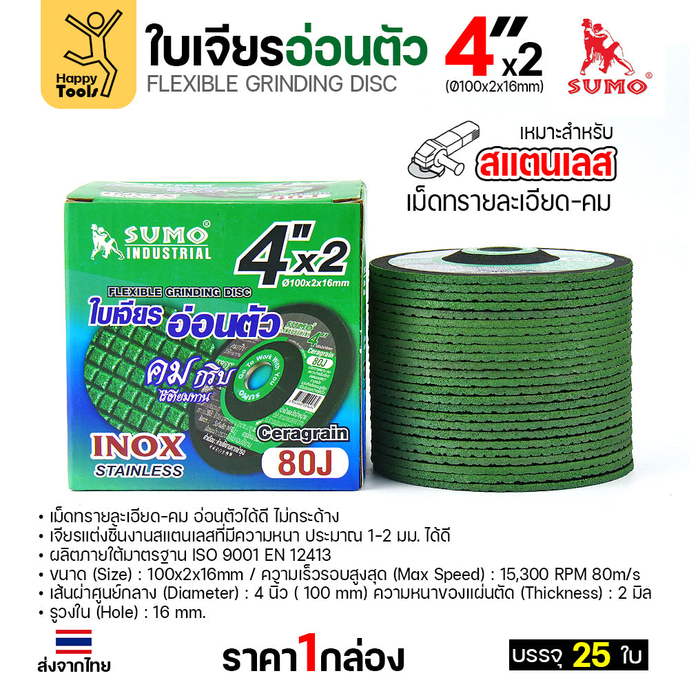 - ผู้เชี่ยวชาญด้านสแตนเลส: ออกแบบมาสำหรับงานเจียรตกแต่งชิ้นงานสแตนเลส (INOX) โดยเฉพาะ ไม่ทำให้เกิดรอยไหม้ดำ