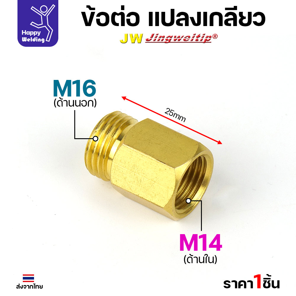 การใช้งาน: เหมาะสำหรับกรณีที่คุณต้องการเชื่อมต่ออุปกรณ์ที่มีเกลียว M16 เข้ากับระบบหรืออุปกรณ์ที่มีเกลียว M14