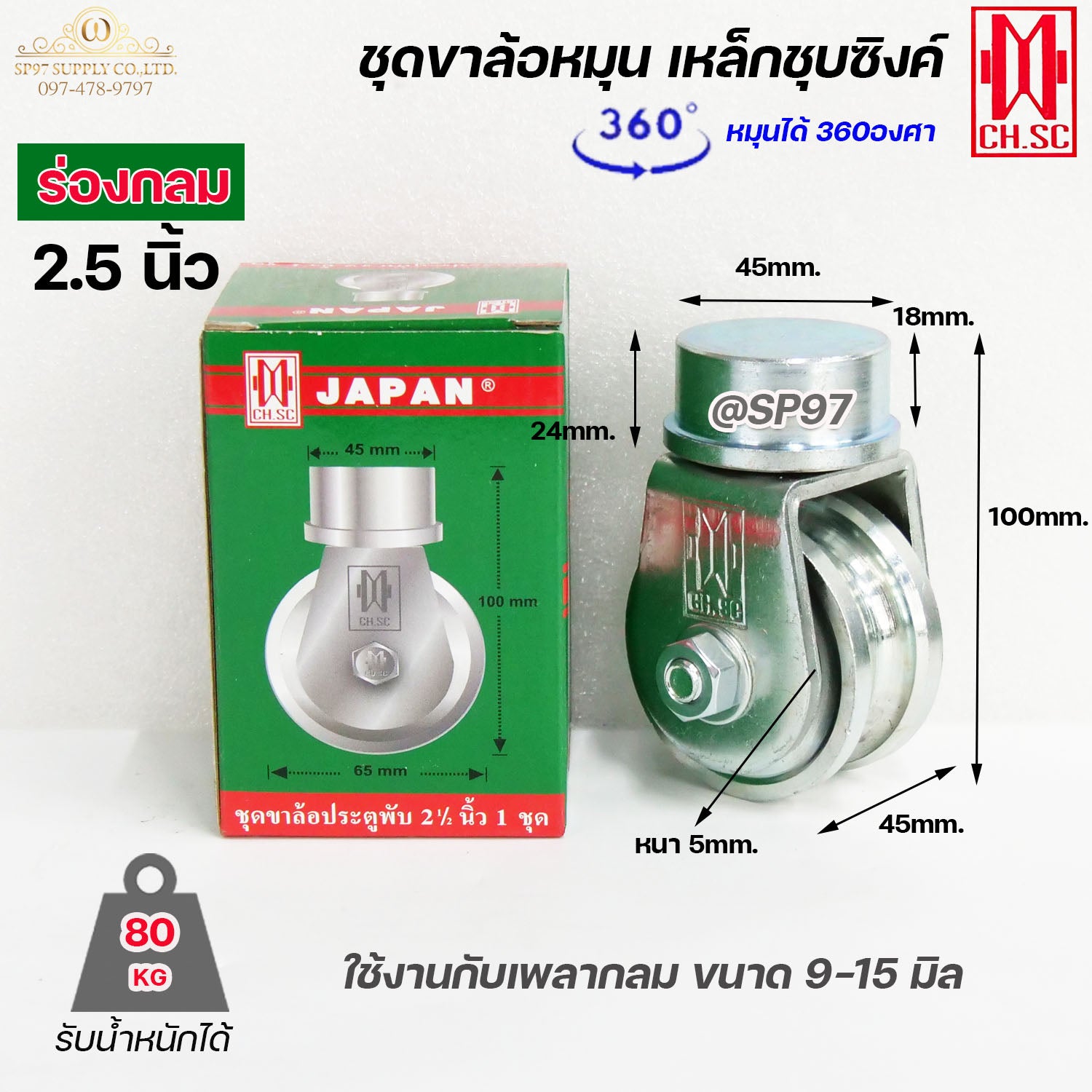CH.SC ชุดขาล้อประตู +ลูกล้อเหล็ก ชุบซิงค์ ร่องกลม หมุนได้ 360 องศา