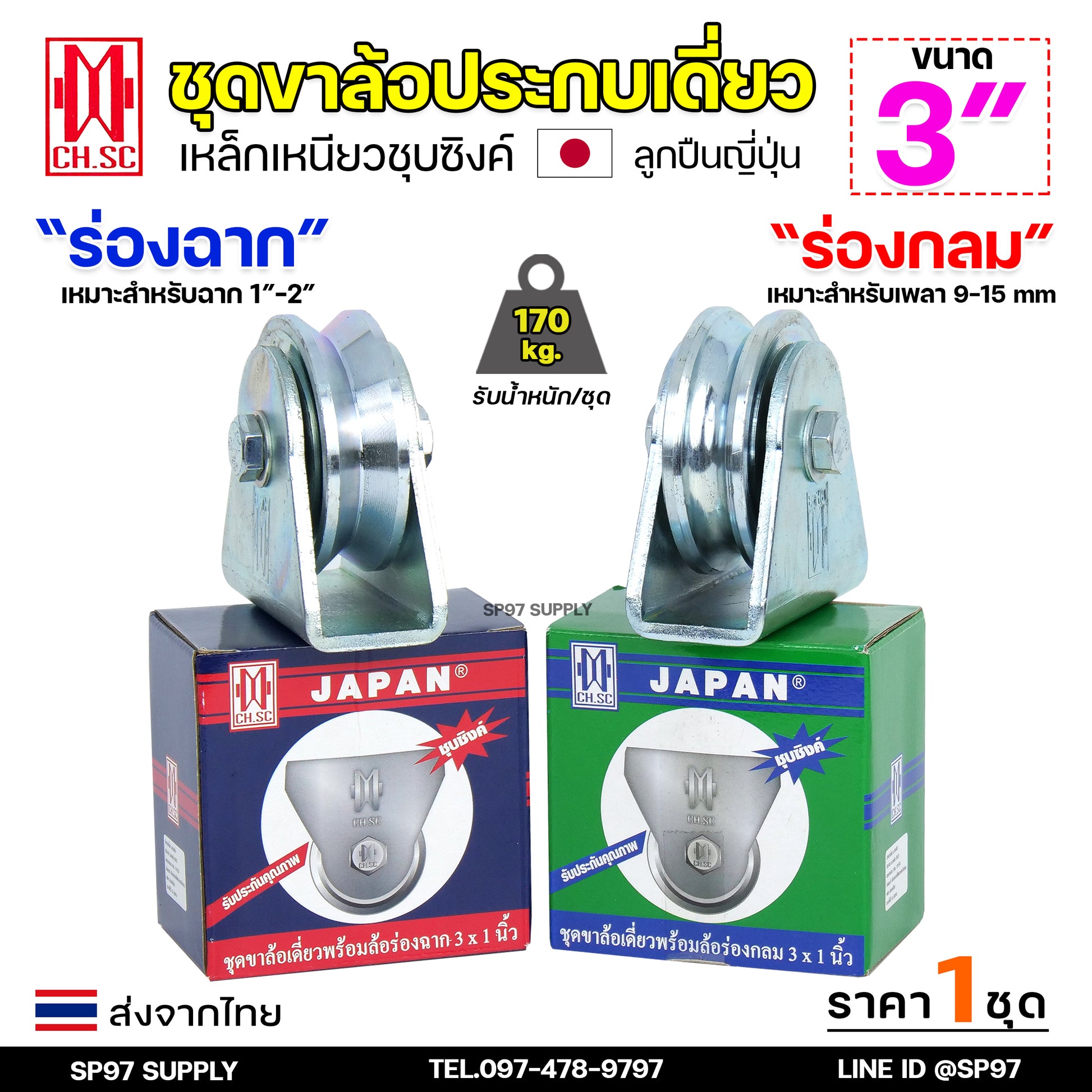 ลูกล้อ เหล็กชุบญี่ปุ่น ขนาด 3" ร่องฉาก ( V )