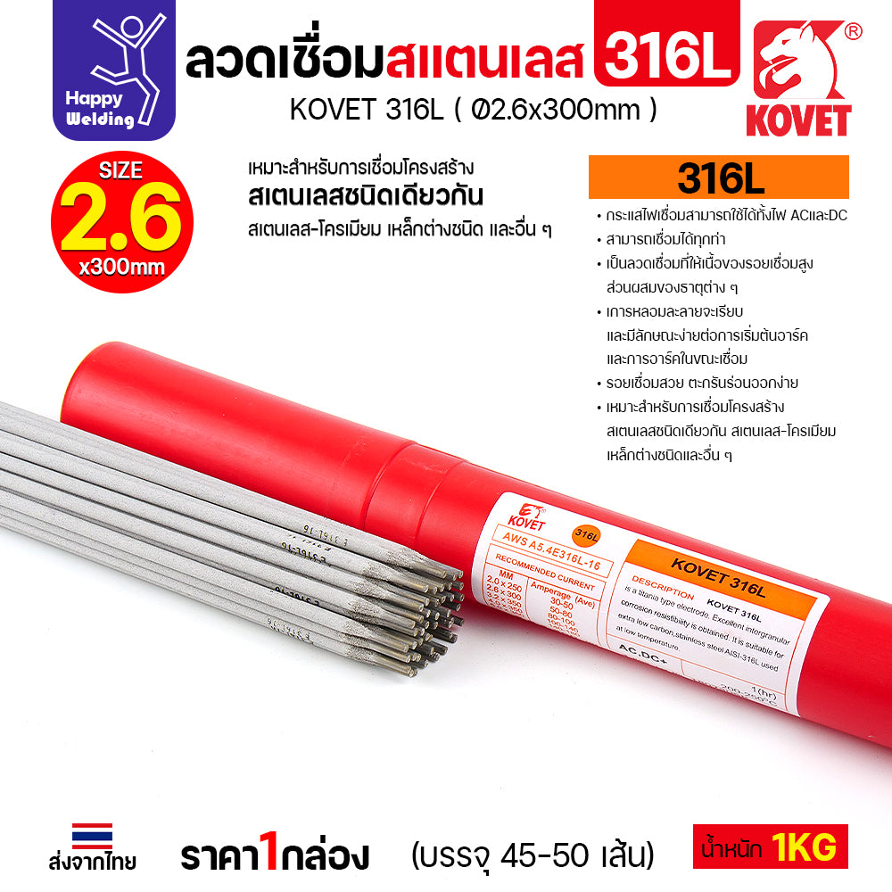 โปรแรง ลวดเชื่อมสแตนเลส KOVET 316L 2.6mm เชื่อมสวยทนสนิม เกรดพรีเมียม ของแท้พร้อมจัดส่งทันที ห้ามพลาด