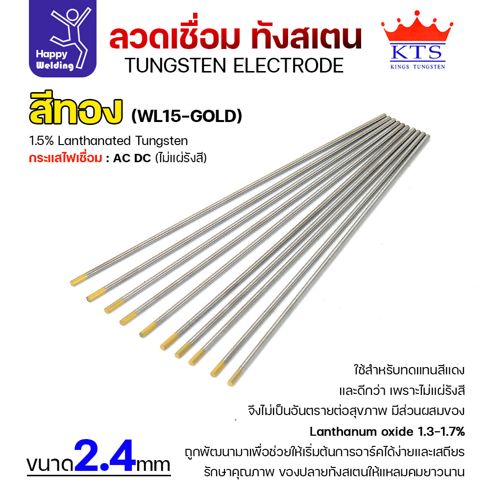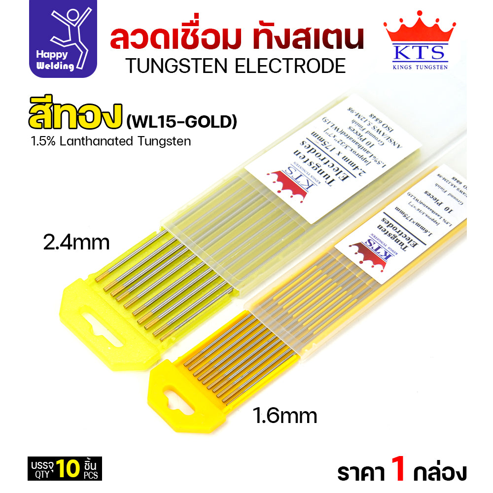 KTS เข็มทังสเตน เชื่อมอาร์กอน ทังสเตน สีทอง รหัสWL15 2.4mm กล่อง 10 เส้น