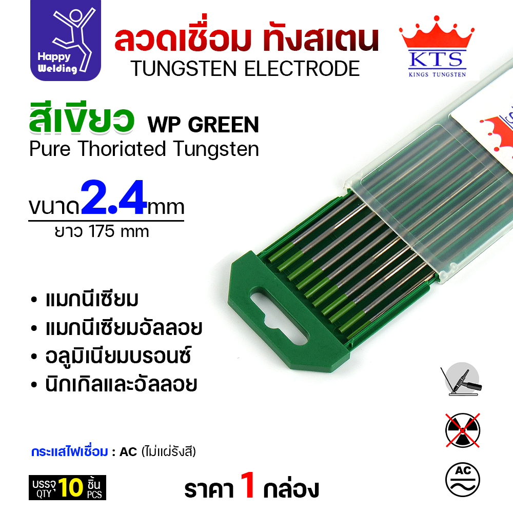 KTS เข็มทังสเตน เชื่อมอาร์กอน ทังสเตน สีเขียว รหัสWP 2.4mm กล่อง 10 เส้น
