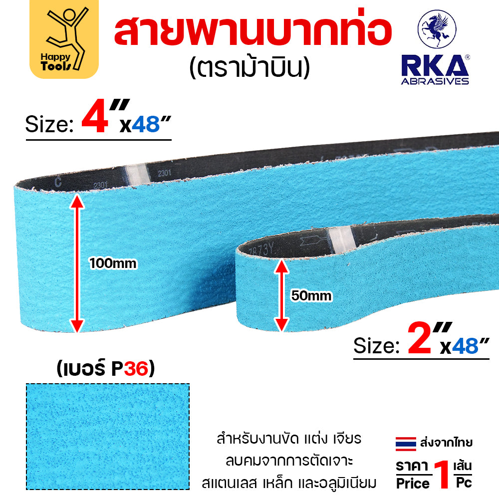 ผ้าทรายสายพาน RKA ม้าบิน สำหรับเครื่องบาก 2" สีฟ้า มีดังนี้: