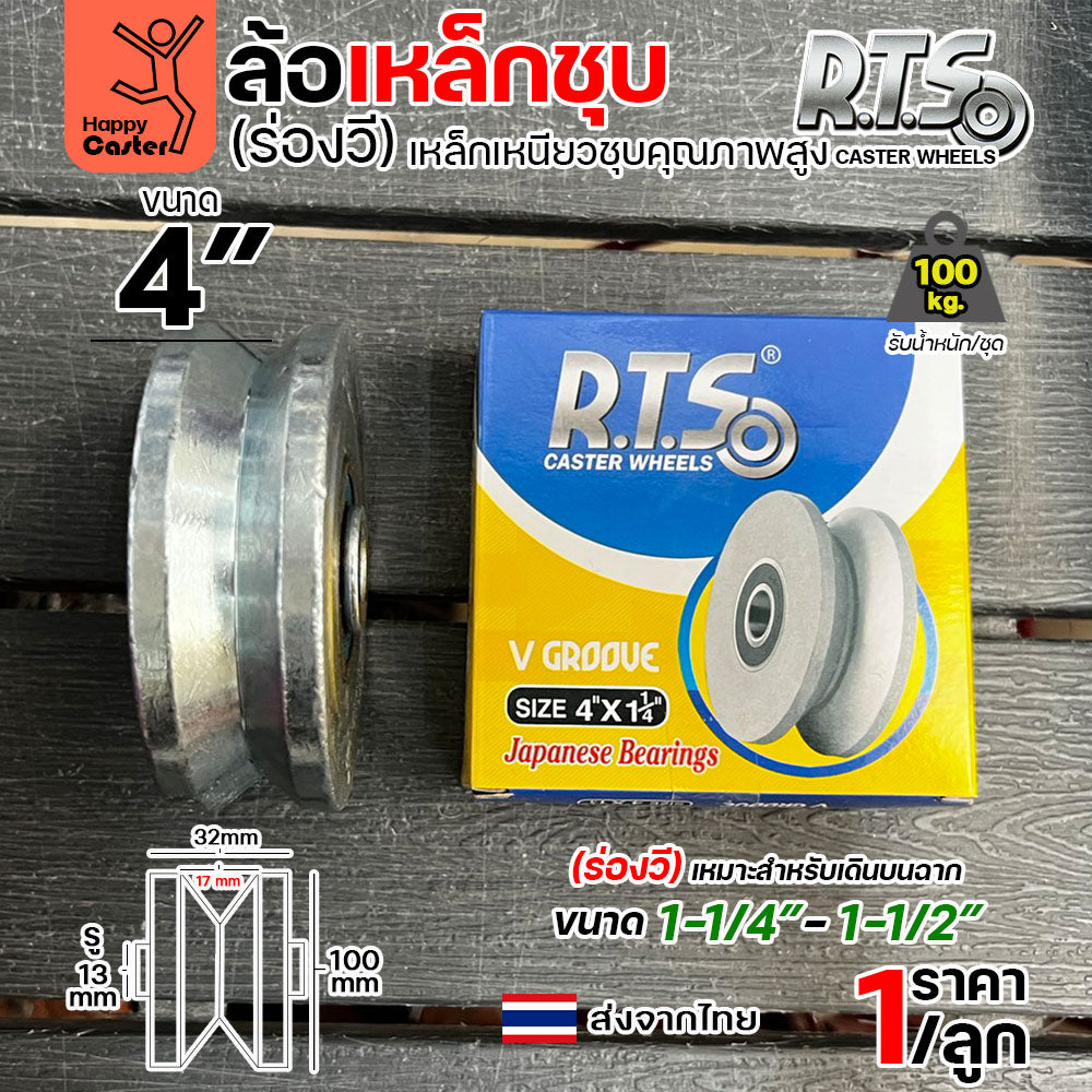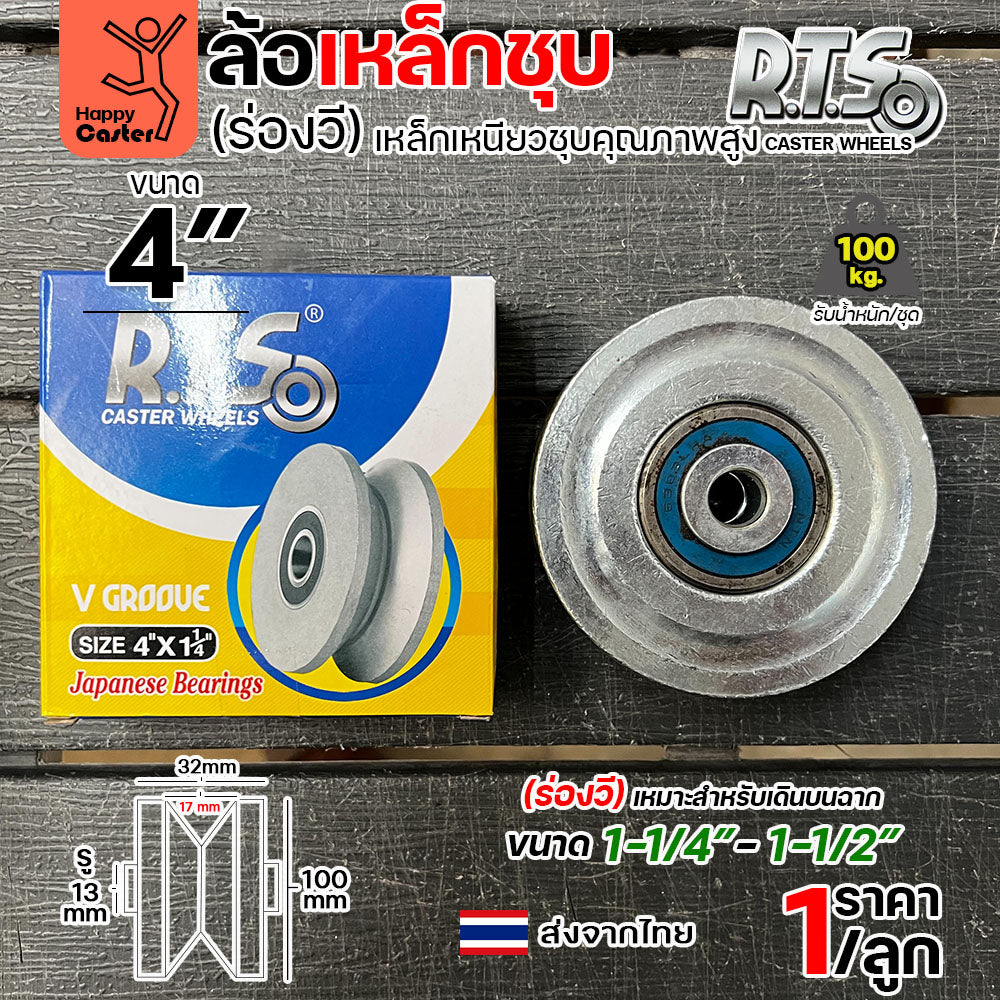 RTS ล้อประตูสแตนเลส 4 นิ้ว (ร่องวี) เกรดเหล็กเหนียวชุบแข็ง พร้อมตลับลูกปืนญี่ปุ่นแท้ (ขนาด 4"x1-1/4")