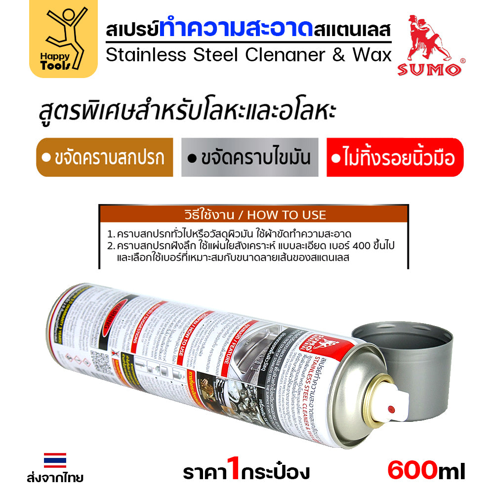 SUMO สเปรย์ขจัดคราบสแตนเลส เคลือบเงาสแตนเลส เคลือบกันสนิม เคลือบหลังขัดสแตนเลส (ขวดใหญ่ 600ml)
