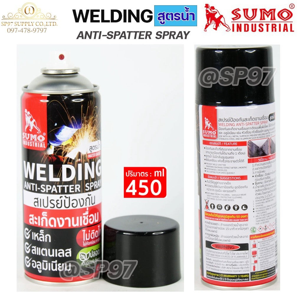 SUMO สเปรย์ป้องกันสะเก็ด สูตรน้ำ ขนาด 450cc เป็นตัวช่วยที่ยอดเยี่ยมสำหรับงานเชื่อมไฟฟ้า งานเชื่อมมิก งานเจียร และงานตัด ช่วยให้งานของคุณง่ายและรวดเร็วยิ่งขึ้น มาพร้อมคุณสมบัติเด่นที่ตอบ