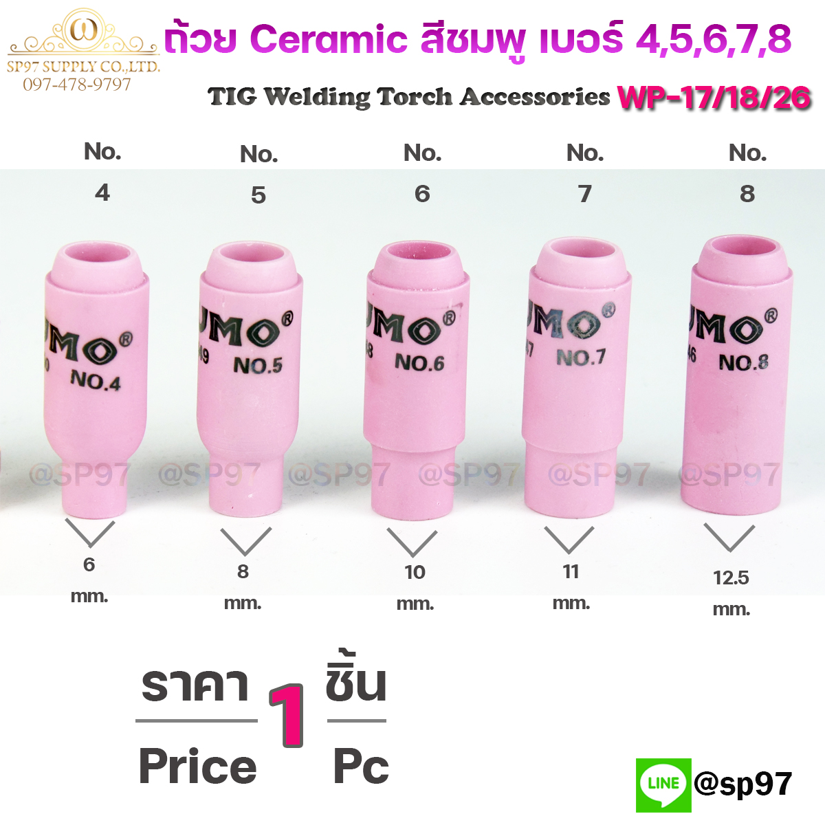 SUMO Ceramic Nozzle ถ้วยกระเบื้องชมพู ถ้วยเชื่อมอาร์กอน ถ้วยเซรามิก อะไหล่หัวเชื่อม เบอร์ 4,5,6,7,8 (1ชิ้น) เลือกได้ในตัวเลือก